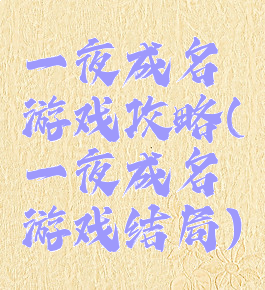 一夜成名游戏攻略(一夜成名游戏结局)
