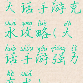 大话手游克水攻略(大话手游强力克水)