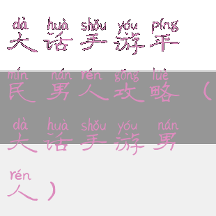 大话手游平民男人攻略(大话手游男人)