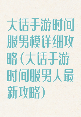 大话手游时间服男模详细攻略(大话手游时间服男人最新攻略)