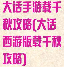 大话手游载千秋攻略(大话西游版载千秋攻略)