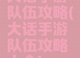 大话手游队伍攻略(大话手游队伍攻略大全)
