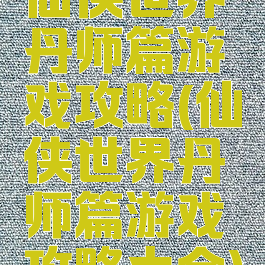 仙侠世界丹师篇游戏攻略(仙侠世界丹师篇游戏攻略大全)