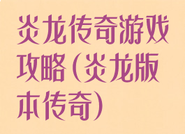 炎龙传奇游戏攻略(炎龙版本传奇)