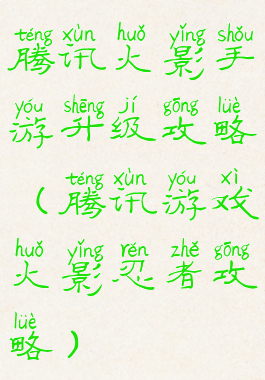 腾讯火影手游升级攻略(腾讯游戏火影忍者攻略)