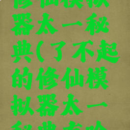 了不起的修仙模拟器太一秘典(了不起的修仙模拟器太一秘典有啥用)