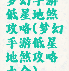 梦幻手游低星地煞攻略(梦幻手游低星地煞攻略大全)