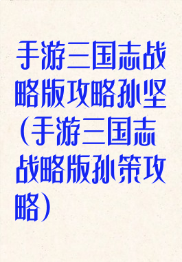 手游三国志战略版攻略孙坚(手游三国志战略版孙策攻略)