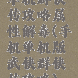 单机群侠传攻略属性解毒(手机单机版武侠群侠传攻略)