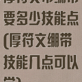 厚符文布绷带要多少技能点(厚符文绷带技能几点可以学)