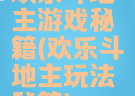 欢乐斗地主游戏秘籍(欢乐斗地主玩法秘籍)