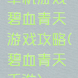 单机游戏碧血青天游戏攻略(碧血青天手游)