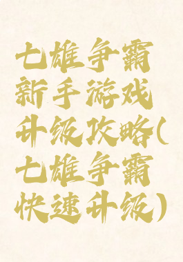 七雄争霸新手游戏升级攻略(七雄争霸快速升级)