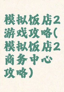 模拟饭店2游戏攻略(模拟饭店2商务中心攻略)