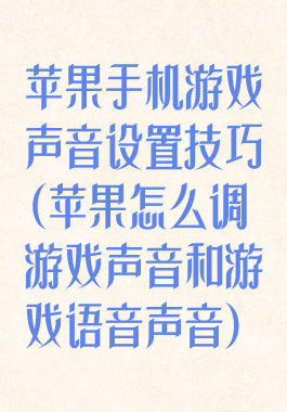 苹果手机游戏声音设置技巧(苹果怎么调游戏声音和游戏语音声音)