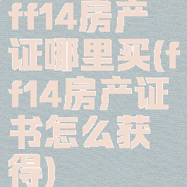 ff14房产证哪里买(ff14房产证书怎么获得)