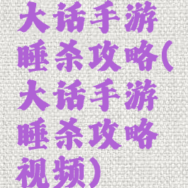 大话手游睡杀攻略(大话手游睡杀攻略视频)
