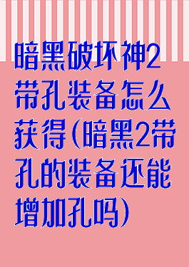 暗黑破坏神2带孔装备怎么获得(暗黑2带孔的装备还能增加孔吗)