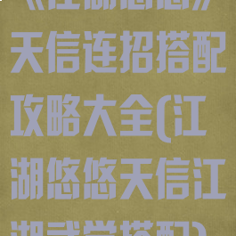《江湖悠悠》天信连招搭配攻略大全(江湖悠悠天信江湖武学搭配)