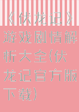 《伏龙记》游戏剧情解析大全(伏龙记官方版下载)