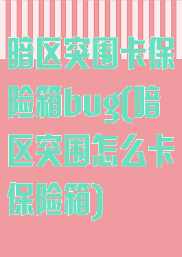 暗区突围卡保险箱bug(暗区突围怎么卡保险箱)