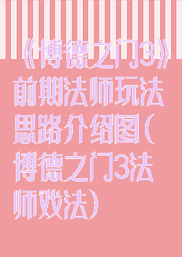 《博德之门3》前期法师玩法思路介绍图(博德之门3法师戏法)
