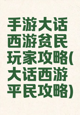 手游大话西游贫民玩家攻略(大话西游平民攻略)