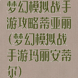 梦幻模拟战手游攻略蒂亚丽(梦幻模拟战手游玛丽安蒂尔)