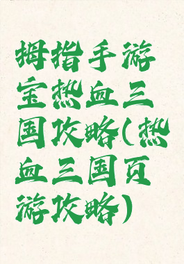 拇指手游宝热血三国攻略(热血三国页游攻略)