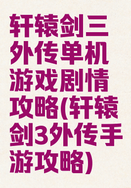 轩辕剑三外传单机游戏剧情攻略(轩辕剑3外传手游攻略)